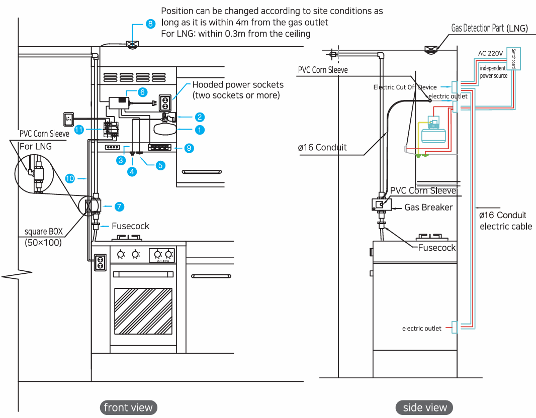 | nstallation Capacity | Can use up to 2 extinguishing cylinders / Nozzle calculated for discharge amount (15kg) / 1 gas shut-off valve, 1 electric shut-off device used |