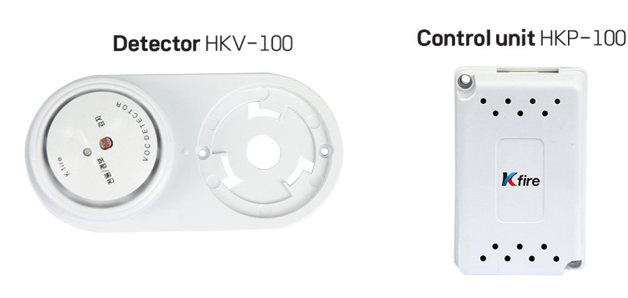 · The KISENⓇ system detects fire using a temperature sensor. If the temperature exceeds the set threshold, it sends a fire alarm. Then, the extinguishing agent stored in the extinguisher is discharged evenly to the protected area around the fire detection point, suppressing the fire and preventing it from spreading.